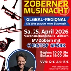 Der Musikverein Zöbern lädt am 25. April 2026 zur Musinacht in die Veranstaltungshalle Zöbern ein. Das diesjährige Konzert steht unter dem Motto „Global – Regional“ und verspricht einen abwechslungsreichen Abend mit Blasmusik in ihren unterschiedlichsten Facetten – von traditionell bis modern und nicht selten überraschend. Denn eines ist für die Musikerinnen und Musiker klar: Die Welt braucht mehr Blasmusik!