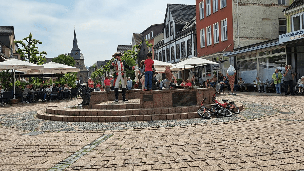 Der Baron von Münchhausen heißt alle musikbegeisterten Zuhörerinnen und Zuhörer herzlich in der Münchhausenstadt Bodenwerder willkommen. Wie auch in den Vorjahren treffen Sie den "Lügenbaron" höchstpersönlich beim "Musik am Brunnen“ jeden dritten Sonntag im Monat von 15:00 bis 16:00 Uhr am Brunnen in der Fußgängerzone an. Musikalisch begleitet wird der Baron von Münchhausen hierbei von verschiedenen Musikkapellen. Genießen Sie bei einer Tasse Kaffee und einem Stück Kuchen die gemütliche Atmosphäre in der Fußgängerzone und erleben Sie den berühmtesten Sohn der Stadt persönlich.