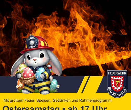 Ei, Ei, Ei – was brennt denn da? Natürlich das große Osterfeuer in Bad Nenndorf! Die Freiwillige Feuerwehr Bad Nenndorf lädt alle herzlich ein, gemeinsam einen stimmungsvollen Abend am Feuer zu verbringen. Am Ostersamstag ab 17 Uhr öffnet das Feuerwehrhaus Bad Nenndorf seine Tore für ein gemütliches Beisammensein mit Familie, Freunden und Nachbarn. Freut euch auf ein großes Osterfeuer, leckere Speisen und erfrischende Getränke. Kommt vorbei, genießt die besondere Atmosphäre am Feuer und verbringt einen geselligen Abend mit der Freiwillige Feuerwehr Bad Nenndorf. Und keine Sorge: Wir löschen an diesem Abend nur den Durst – versprochen! Eure Freiwillige Feuerwehr Bad Nenndorf, seit 1880 für Sie im Einsatz