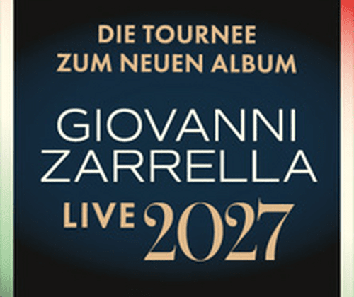 Und wenn er ab April 2027 im Rahmen seiner Tournee "GIOVANNI ZARRELLA – LIVE 2027" zurück auf die Bühnen in Deutschland, Österreich, in der Schweiz und in Luxemburg kommt, wird er diese besondere Atmosphäre wieder heraufbeschwören und seiner bemerkenswerten Karriere ein neues aufregendes Live-Kapitel hinzufügen. Diese Hallen- und Arena-Tour ist besonders: 16 handverlesene Shows – unter anderem in Berlin, Hamburg, Köln, München, Stuttgart, Zürich und Wien – bieten dem Zuschauer ein Konzerterlebnis, das moderne Pop-Produktion mit italienischer Leidenschaft verbindet.