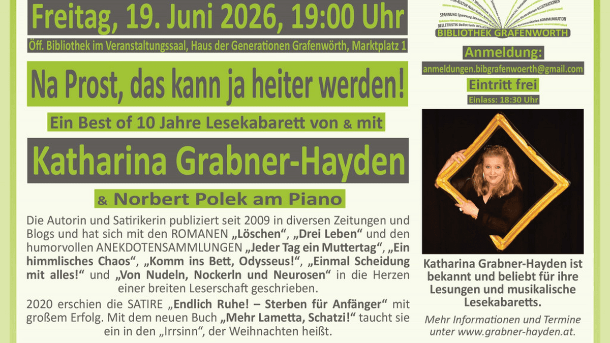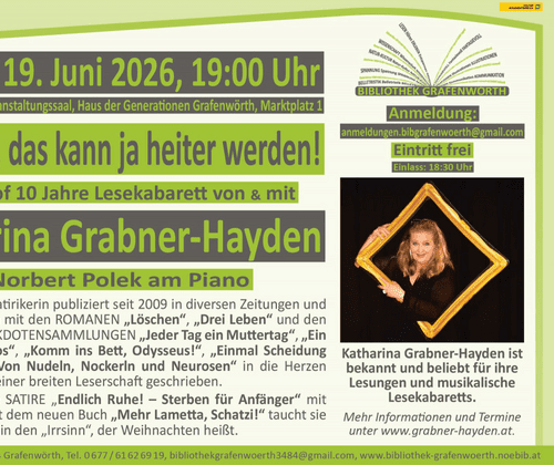Im Rahmen des 10 Jährigen Jubiläums der Öffentlichen Bibliothek Grafenwörth macht Katharina Grabner-Hayden den Auftakt.