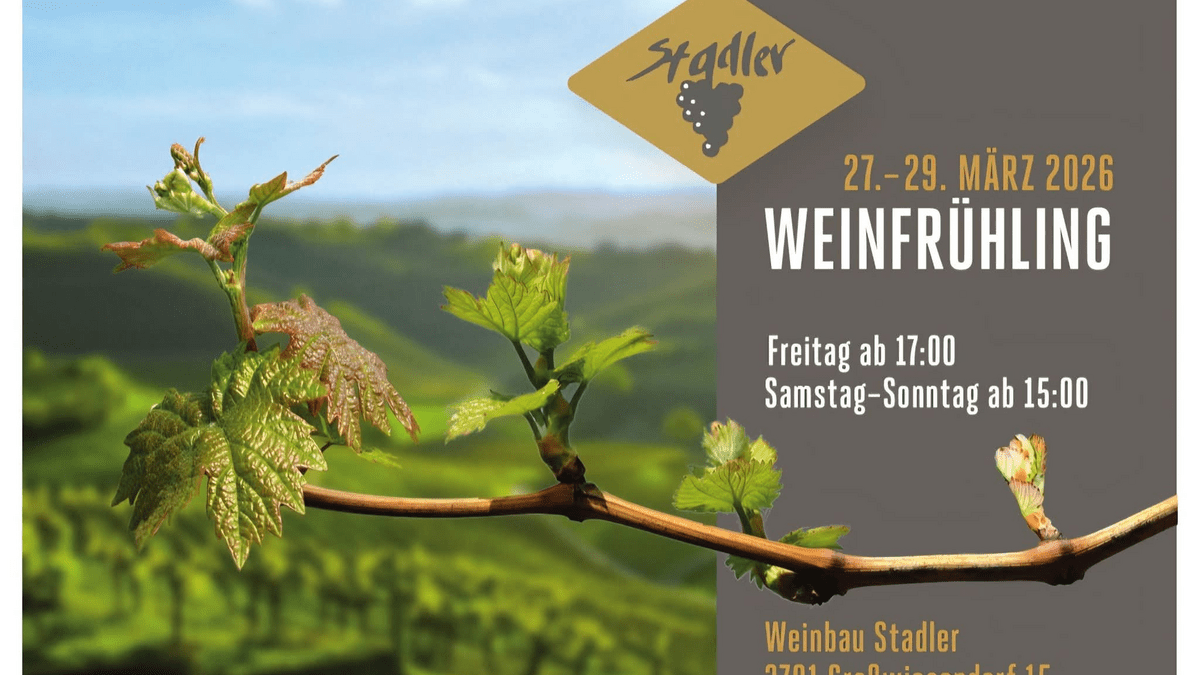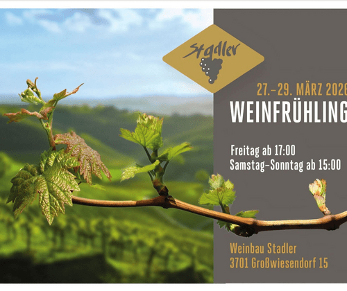 Der Weinbau Stadler lädt von 27. bis 29. März 2026 zum Weinfrühling nach Großwiesendorf ein. In gemütlicher Atmosphäre können aktuelle Weine verkostet und das Sortiment des Weinguts entdeckt werden. Eine schöne Gelegenheit, den neuen Jahrgang kennenzulernen und genussvoll in den Frühling zu starten.