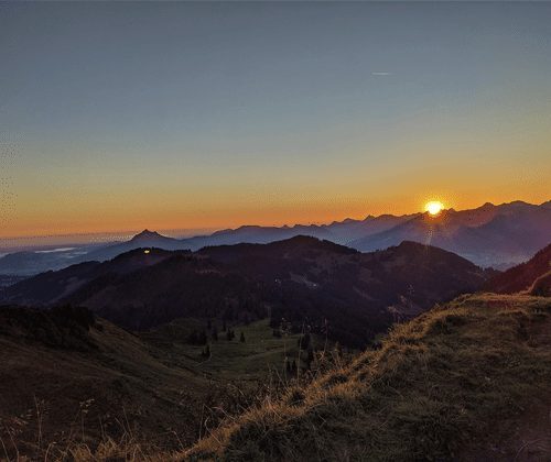 Als höchster Gipfel der Hörnergruppe bietet das Riedberger Horn einen fantastischen Ausblick. Wir starten in der Morgendämmerung am Parkplatz Grasgehren und machen uns von dort aus zu Fuß auf den Weg zum Gipfel des Riedberger Horns. Am Gipfelkreuz genießen wir den stimmungsvollen Sonnenaufgang und den Blick über die Gipfel der Alpen - bei gutem Wetter können wir sogar den Bodensee erkennen. Dann geht es zurück bis zur Grasgehrenhütte, dort erwartet uns ein reichhaltiges Allgäuer Berglerfrühstück und wir lassen den Morgen gemütlich ausklingen. Zum Schutz der sehr sensiblen Rauhfußhühner, die vom Aussterben bedroht sind aber in diesem Gebiet noch vorkommen, laufen wir nur außerhalb der Brutzeit und auch nur zu der Zeit, zu der wir keine Stirnlampe brauchen. Zudem bitten wir Dich, Dich während der Wanderung ruhig zu verhalten und auf dem Weg zu bleiben. Hunde dürfen leider an dieser Wanderung nicht teilnehmen. Die Personenzahl ist bei dieser Wanderung auf maximal 8 Personen begrenzt. Dauer: ca. 3 Stunden ohne Einkehr. Preise: Normalpreis: 35,00 € (inkl. Frühstück) Mit Gästepass der Hörnerdörfer ermäßigt: 25,00 € (inkl. Frühstück) Anmeldung: Jetzt online reservieren »