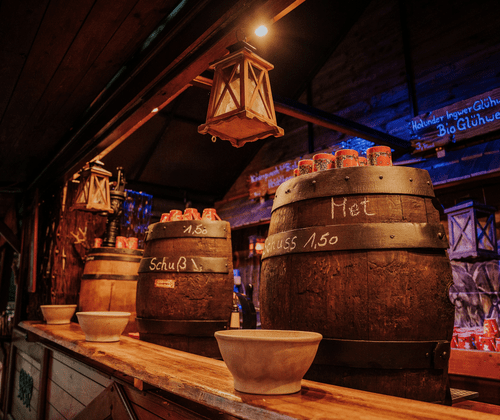 Das kulinarische Angebot bedient alle Geschmäcker. Drachenwurst ist nirgendwo passender als hier, am Flammkuchen-Stand wird gezeigt, wie Pizza früher ging. Über den Tresen geht das Bier auch in Glüh-Ausgabe.