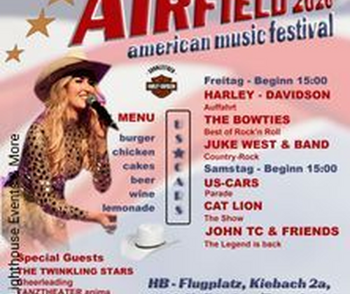 Wenn sich ein Flugzeughangar in eine Festivalbühne verwandelt, entsteht ein ganz besonderes Ambiente: AIRFIELD 2026 bringt American Music, Country, Rock’n’Roll und Western-Vibes an den HB-Flugplatz Hofkirchen im Traunkreis. Freu dich auf zwei Tage Live-Musik mit starken Acts, dazu US-Cars, Harley-Davidson-Treffen und Showeinlagen – alles wetterunabhängig im Hangar I („nicht ganz im Freien, und doch unter Dach“).