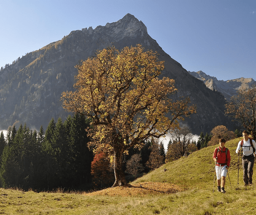 Mit dem Giebelhausbus fahrt Ihr bis zur Haltestelle Säge Brücke, über den Sommerweg wandert Ihr dann zur Schwarzenberghütte ins sogenannte "Paradies" hinauf. Hier wird eingekehrt. Absteigen werdet Ihr über die Käseralpe zum Giebelhaus. Von dort geht es mit dem Bus zurück nach Hinterstein. Anmeldung über die Tourist Information Hindelang unter +49 8324 8920
