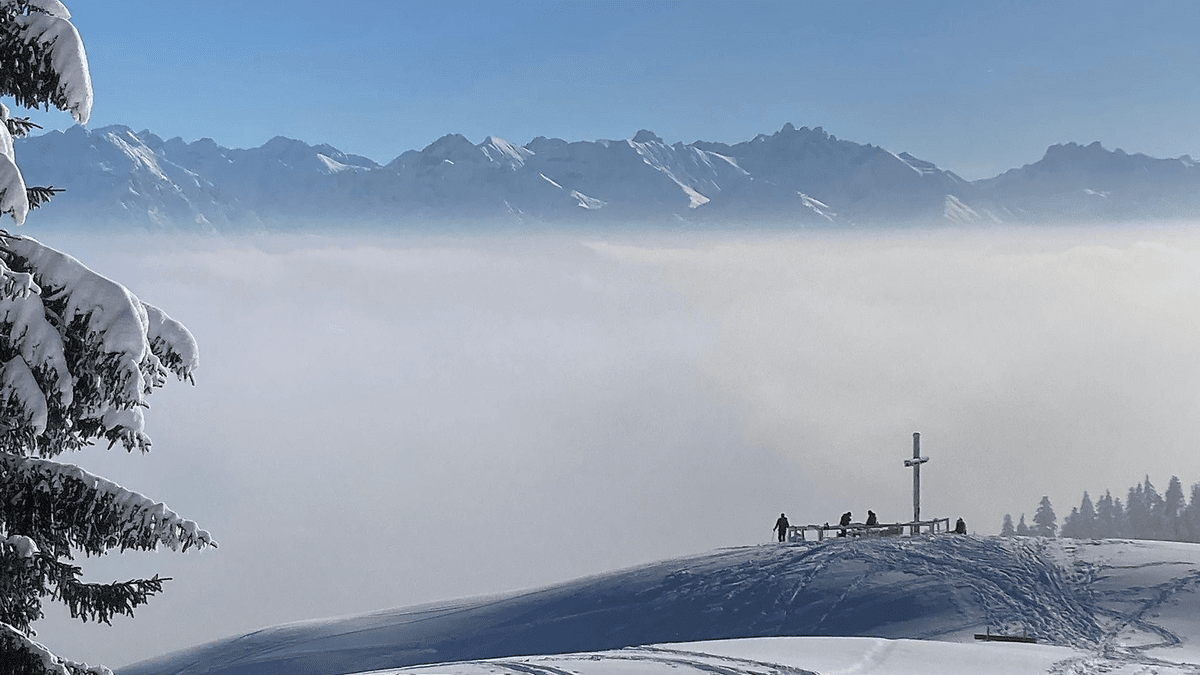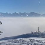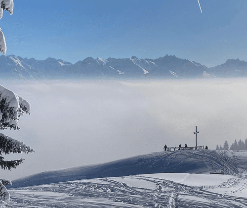 Mit dem Sessellift erreichst Du sehr komfortabel den Ausgangspunkt dieser Schneeschuhwanderung - die Bergstation des „Weltcup-Express“, wo Du von einem grandiosen Alpenpanorama empfangen wirst. Von hier führt die Tour zunächst hinauf zum Ofterschwanger Horn. Begleitet von traumhaften Ausblicken in Richtung Allgäuer Hauptkamm, Nagelfluhkette und Illertal folgt nun der kurze Abstieg zur Fahnengehrenalpe, bevor der Aufstieg zum Gipfel des Sigiswanger Horns beginnt. Schon bald ist der 2. Gipfel geschafft! Nach einer verdienten Gipfelrast geht es zurück zur Bergstation, ehe Du mit dem Sessellift – und „den beiden Hörnern in der Tasche“ - wieder entspannt nach Ofterschwang hinunterschweben. Treffpunkt: Talstation des „Weltcup-Express“ in Ofterschwang Ende: Gegen 13:00 Uhr an der Talstation des „Weltcup-Express“ in Ofterschwang Streckenlänge: ca. 5 km Höhenmeter: ca. 300 Hm Gehzeit: ca. 3 Stunden Wichtiges: Das Bergbahnticket ist im Preis inbegriffen. LVS-Ausrüstung (Schaufel, Sonde, Pieps) inklusive. Bitte bringe einen Rucksack für Ihre Verpflegung und LVS-Ausrüstung mit. Leihausrüstung (Schneeschuhe/Stöcke) zustätzlich 10,00 €.