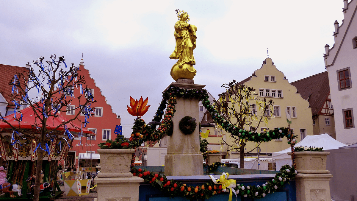 Am Sonntag, den 22. März 2026 findet der traditionelle Ostermarkt in Wemding statt. Pünktlich dazu bekommt auch der Marienbrunnen am Marktplatz sein österliches Kleid. Zusätzlich zum Fierantenmarkt (ab 9 Uhr) öffnen beim verkaufsoffenen Sonntag um 12:30 Uhr die Geschäfte mit Aktionen und Frühjahrstrends. Kinder können sich auf ein großes Karussell auf dem Marktplatz freuen. Jedes Jahr steht der Marktsonntag in Wemding unter einem anderen Motto. Dieses wird rechtzeitig bekanntgegeben.