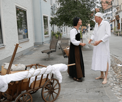 Ritter – Fürstabt – Hexe Begeben Sie sich mit uns auf eine Zeitreise in die Geschichte der Stadt Kempten. Erleben Sie in Schauspielszenen, wie Ritter Heinrich mutig seinen Kaiser verteidigt, hören Sie vom Ratsch und Tratsch der mittelalterlichen Reichsstadt, erfahren Sie vom Leben am Hofe der Fürstäbte in der Stiftsstadt und treffen Sie die „letzte Hexe“ Maria Anna Schwegelin auf ihrem Weg ins Gefängnis. Wir machen Geschichte für Sie lebendig. Verlauf der Stadtführung: Rathaus – Rathausplatz – St.-Mang-Platz – Gerberstraße – Residenzplatz – Hofgarten – Residenzplatz (Änderungen vorbehalten!) Hinweis: Die Führung findet bei jeder Witterung statt.