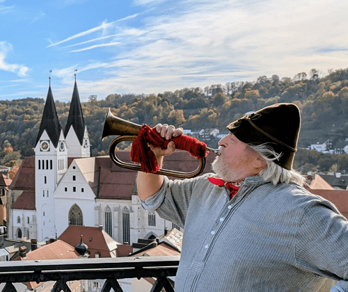 Im Rahmen dieser Kostümführung wandeln Sie auf den Spuren des historisch belegten Zinngießers und Turmwächters Anton Eisenhart. Dieser blickte im 19. Jahrhundert als einer der letzten Eichstätter Türmer hoch über der Stadt auf dem Rathausturm ins Weite, um die verantwortungsvolle Brandwache zu versehen. Dabei nahm er es mit seinem wichtigen Dienst auf dem zugigen Turm nicht immer allzu genau. Steigen Sie mit dem etwas raubeinigen und dennoch immer liebenswerten Türmer die engen Stufen bis zur Aussichtsplattform hinauf und tauchen Sie tief in die Geschichte des Eichstätter Türmerwesens ein, bevor Sie mit dem spektakulärsten Rundumblick, den die Altmühlstadt zu bieten hat, belohnt werden. Ein Besuch der seit über 220 Jahren existierenden Zinnwerkstatt Eisenhart mit kleinem Hausmuseum am Marktplatz wird ein weiteres Schmankerl darstellen. Die Führung ist nicht barrierefrei. Der Aufstieg auf den Rathausturm erfolgt über zahlreiche Stufen (43 Stufen im Rathaus, im engen und steilen Turm sind es 129, also insgesamt 172 Stufen), sowie über einen engen und teilweise niedrigen Treppenaufgang. Die Stadt Eichstätt und die Turmführer übernehmen hierbei keine Haftung! Teilnahme ab 12 Jahren. Bei Sturm ist kein Besuch des Turmes möglich