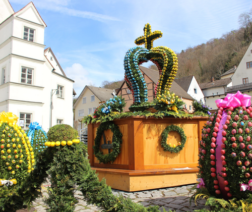Bestaunen Sie den Kipfenberger Osterbrunnen, einen der schönsten der Region. Der Osterbrunnen Kipfenberg wird jedes Jahr durch die „Interessengemeinschaft Osterbrunnen Kipfenberg“ gestaltet. Seit 1998 wird auf dem Marktplatz eine „Krone“ aufgestellt (heuer bereits zum 28. Mal), die mit frisch gebundenen Girlanden versehen wird. Über 2000 handbemalte Eier werden an den Girlanden befestigt. Zudem werden sechs große Eier angebracht, auf denen sich jeweils 200 handbemalte Eier mit verschiedenen bayerischen Motiven befinden. Eine Auswahl an wunderschönen Eiern (ausschließlich "echte"), von den MalerInnen der "Interessengemeinschaft Osterbrunnen" liebevoll bemalt und lackiert, kann als Ergänzung des Osterschmucks zuhause oder als Geschenk bei der Apotheke St. Georg, Metzgerei Gehr, Raumausstattung Rehm, der Tourist-Information oder während des Ostermarktes am Stand der "Osterbrunnenleut´" erworben werden.