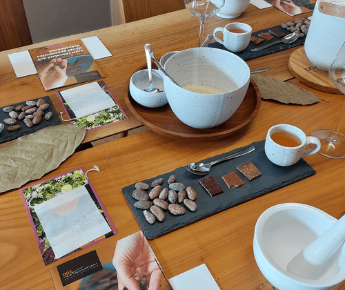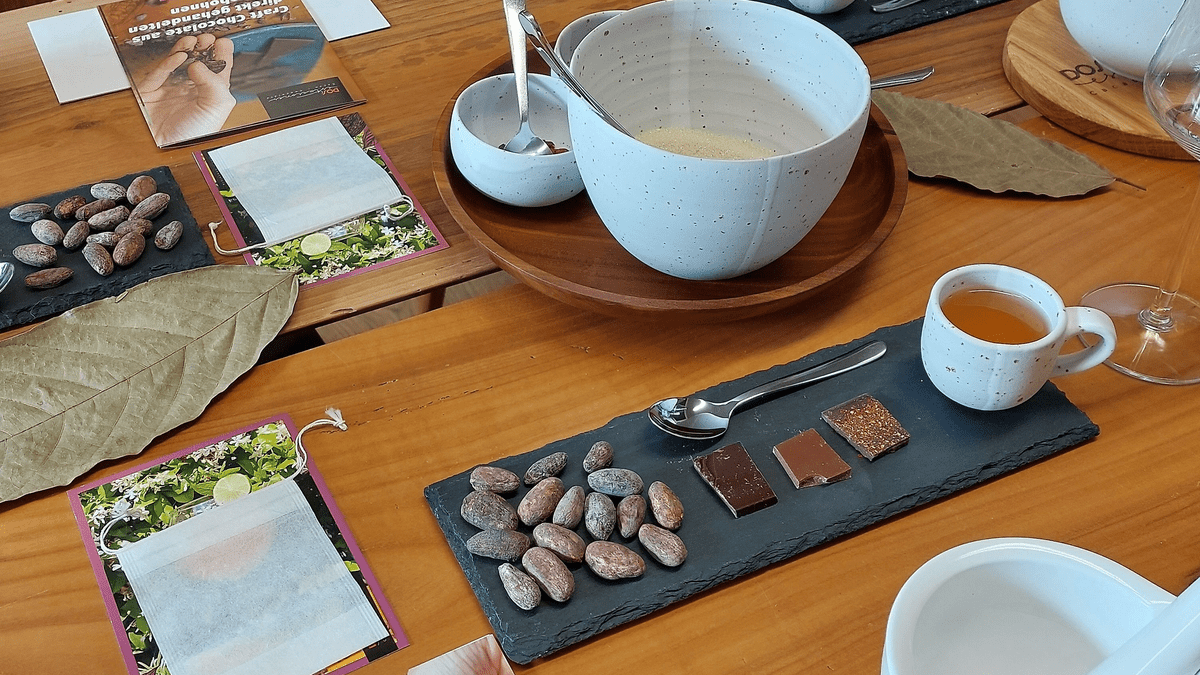 Komm uns in unserer Schokoladenmanufaktur zu einem unserer Schokoladen – Tasting besuchen und erlebe unsere Schokolade mit allen Sinnen. Wir zeigen dir, wie unsere Schokolade hergestellt wird, erklären dir alles rund um die Kakaobohne und deren Anbau und bringen dir bei, alle Komponenten unserer Schokolade auf der Zunge zu schmecken: Dauer: 1,5 – 2 Stunden Kursgröße: ab 6 Personen Verkostung von 4+ Sorten unserer Schokoladen und Kakaokreationen inklusive 5€-Gutschein für unsere Schokoladenmanufaktur Wenn du weitere Fragen hast, einen besonderen Termin brauchst oder eine größere Gruppe buchen möchtest. Kontaktiere uns direkt. Kontakt Kurse finden nur mit genügend Teilnehmer statt, Sollte das nicht der Fall sein, wird gemeinsam ein geeigneter Termin gesucht. Geld wird nicht erstattet. Hinweis: Bitte informiere uns im Voraus über Allergene und Unverträglichkeiten, damit wir diese berücksichtigen können.
