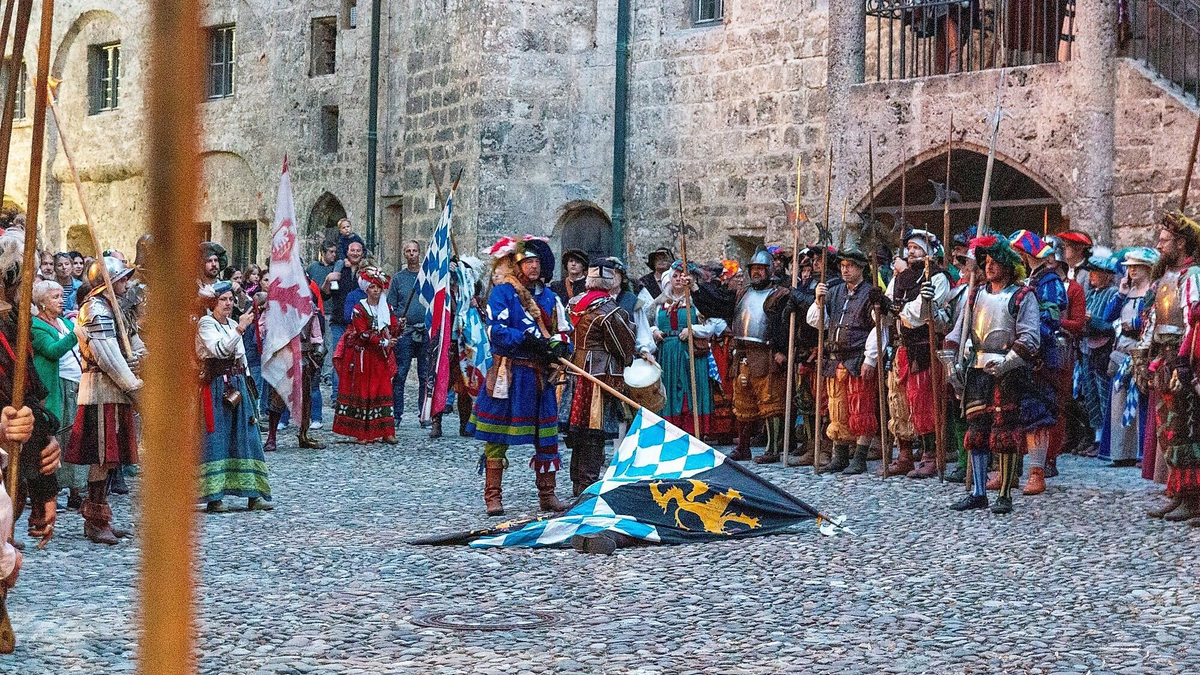 Drei Tage lang – immer am zweiten Juli-Wochenende – verwandelt sich die weltlängste Burg in Burghausen in ein lebendiges Mittelalterspektakel. Das Jahr 1523 wird lebendig, wenn Herzog Wilhelm IV. höchstpersönlich Burghausen beehrt. Überall begegnen dir farbenfroh gekleidete Gestalten, stolze Ritter, fröhliche Gaukler und edle Damen in prächtigen Gewändern – von Hand gefertigt nach alten Schnittmustern. Spaziere durch die festlich geschmückten Höfe der Burg und entdecke mittelalterliche Händler, die mundgeblasenes Glas, feine Lederwaren und handgemachten Schmuck anbieten. Überall erklingt Musik, Gaukler verblüffen mit ihren Künsten – und der Duft von frisch gebackenem Brot, Flammkuchen und herzhaften Speisen liegt in der Luft. Erlebe hautnah, wie das Leben damals war: In den Lagern der historischen Gruppen kannst du den Handwerkern bei ihrer Arbeit über die Schulter schauen, Tänze und Schaukämpfe bestaunen oder beim großen Festumzug mittendrin sein.