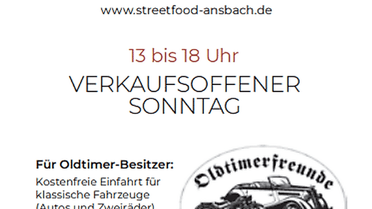 Die Oldtimer-Freunde Ansbach präsentieren ihr jährliches Oldtimer Treffen. Erleben Sie die besonderen und geschichtsträchtigen Oldtimer, Youngtimer und Zweiräder inmitten der historischen Kulisse der Altstadt. Für Oldtimer-Besitzer: Kostenfreie Einfahrt für klassische Fahrzeuge (Autos und Zweiräder) vor Baujahr 1996. Einfahrt über die Würzburger Straße auf den Martin-Luther-Platz