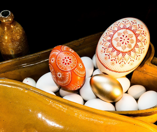 Bei Gebrauchsgegenständen, die wir tagtäglich benutzen, spielen Optik und Ästhetik meist nur eine untergeordnete Rolle. Bei ihnen kommt es vor allem auf die Funktionalität und den Zweck an. Noch vor 100 Jahren zählten Gefäße aus Keramik zu den wichtigsten Alltagsobjekten in bäuerlichen Haushalten. In ihnen wurden Getränke wie Bier und Wein transportiert und Lebensmittel wie Essig und Öl gelagert. In großen Gärtöpfen konnten Nahrungsmittel haltbar gemacht werden und mit Back – und Puddingformen aus Keramik zauberten die Bäuerinnen leckere Speisen mit schönen Motiven. Trotz der Einfachheit der einzelnen Gefäße, zeigt die Sammlung eine Vielfalt an Formen und Gestaltungen keramischer Alltagsgegenstände. Ergänzt wird die Ausstellung durch kunstvoll verzierte sorbische Ostereier und österliches Gebäck aus der ganzen Welt.