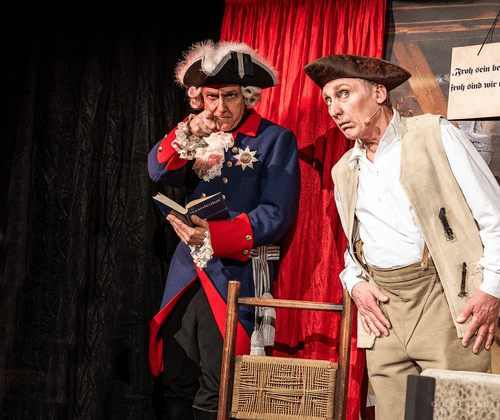 Friedrich II. - der Große! - und der Müller von Sanssouci Kabarett von Andreas Flügge Eben hat der Alte Fritz noch überlegt, wie sich die verhasste Mühle in der Nachbarschaft plattwalzen ließe. Jetzt steht er, bedroht von Enteignung und Obdachlosigkeit, vor seinem besten Feind, dem Müller Grävenitz. Der bietet ihm nicht nur großzügig Asyl an, sondern auch noch seine Hilfe beim Umzug. Doch der König ist schockiert: Er bereitet gerade seine Kandidatur für die Bundeskanzlerwahl vor – wo soll er denn in der mickrigen Mühle ein Wahlkampfbüro einrichten?! So viel Spaß hat Preußen noch nie gemacht! Mit den originalen Darstellern von Antenne Brandenburg: Andreas Flügge und ubs-Intendant André Nicke. Regie: Reinhard Simon a.G.