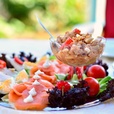 Genießen Sie sonntags einen umfangreichen Brunch. Liebevoll ausgewählte Produkte und einen zuvorkommenden und herzlichen Service zeichnen uns auch hier aus. In der Zeit von 6:30 - 11:00 Uhr genießen Sie unser hochwertiges Frühstücksbuffet mit ausgewählten Cerealien, regionalen Aufschnitten, frischem Obst und Gemüse, ausgesuchten Backwaren, Eierspeisen aus echten Eiern, Tee- und Kaffeespezialitäten, Bauer Säften und vielem mehr. Auch ein Glas Sekt zum Anstoßen darf hier nicht fehlen. Ab 11:00 bis 14:00 Uhr ergänzen wir dann das Buffet um herzhafte Leckereien, hochwertige Speisen der deutschen und internationalen Küche. Eine Reservierung ist erforderlich.