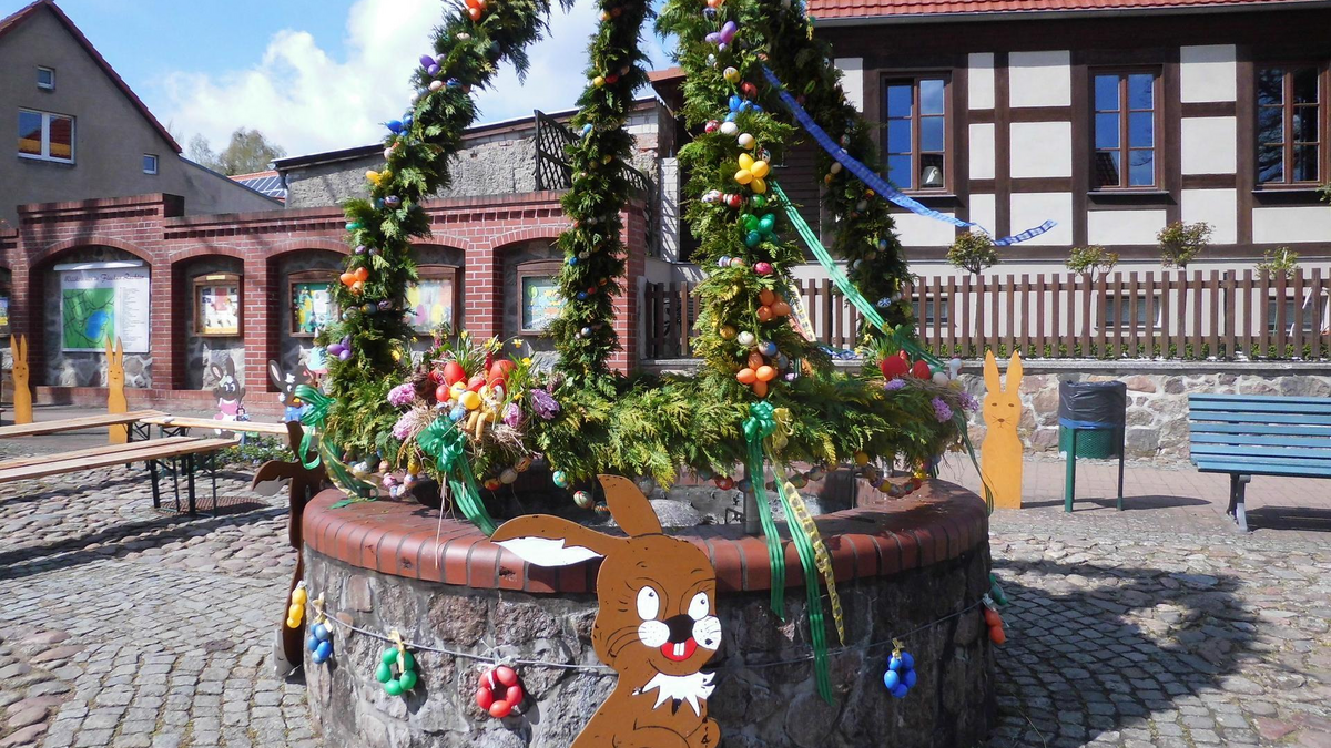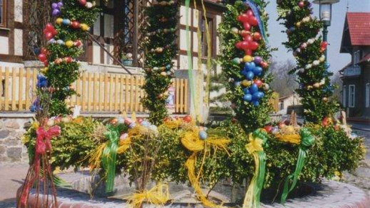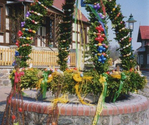 Es ist eine Tradition den öffentlichen Brunnen zu Ostern zu schmücken. Mit den bunten Farben wird der Winter ausgetrieben und der Frühling bricht an.