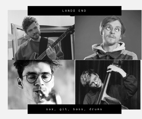 Dialog statt Selbstgespräche - Eine Wiederbegegnung Vier Musiker mit einem einzigartigen Stil: Nach längerer Pause nehmen die Mitglieder von Land's End die Abenteuerreise wieder auf und treten in einen spannenden musikalischen Austausch. Mit eigenen Kompositionen und einer Auswahl ihrer Lieblings-Jazz-Standards bringen sie ein Konzert gefühlvoller Melodien, musikalischer Dialoge und dem nie endenden Schlagzeugfeuerwerk auf die Bühne.   Henrik Baumgarten - tenorsaxophon Moritz Land - Gitarre Paula Wünsch - Kontrabass Hans Otto - Schlagzeug