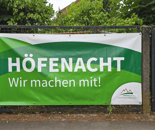 Bei der Höfenacht öffnen zahlreiche Höfe für einen Abend ihre Tore. Bei sommerlicher Abendatmosphäre erleben Besuchende Livemusik unterschiedlicher Genre und entdecken Kulinarisches. Örtliche Gewerbetreibende, Vereine und viele Ehrenamtliche engagieren sich jedes Jahr, damit Die Höfenacht zu einem lebendigen Erlebnis für alle wird.