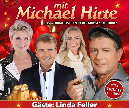 Michael Hirte und Gäste laden zur großen Weihnachtsshow ein. Gefühle und Emotionen zu zeigen ist für Superstar Michael Hirte was ganz besonderes, gerade zur Vorweihnachtszeit. Mit seiner Mundharmonika und seinen gefühlvollen Liedern gelingt es dem Superstar immer wieder sein Publikum genau da zu treffen, wo es gut tut, nämlich mitten ins Herz. Erleben sie den erfolgreichen Musiker live und hautnah und lassen sie sich verzaubern von seinem Charme und seiner ganz natürlichen Art bei „ Weihnachten mit Michael Hirte - Das Weihnachtskonzert der großen Emotionen garantiert auch in ihrer Nähe. Michael Hirte wurde über Nacht vom Straßenmusiker zum Superstar und Publikumsliebling Nr. 1. Eine ganze Nation liegt ihm zu Füßen und ist berührt von seinem einzigartigen Spiel auf seiner Mundharmonika. Spätestens wenn sein Ava Maria erklingt, wird dies sicher ein besonderer Gänsehautmoment, den das Publikum nicht so schnell vergessen wird. Michael Hirte hat sich tolle musikalische Gäste eingeladen, wie die bezaubernde Linda Feller, eine der ganz großen Stimmen des Schlagers mit ihren schönsten Liedern wird sie für wahre Beifallsstürme sorgen. Mit dabei ist auch Publikumsliebling Reiner Kirsten – der Sonnyboy der volkstümlichen Schlagers aus dem Schwarzwald, der sie auch als Moderator durch das Programm führen wird und bezaubernde Sängerin Liane als der Sonnenschein des deutschen Schlagers wird ihr musikalisches Debüt geben und auch im Duett mit Reiner Kirsten musikalisch dem Nachmittag eine glanzvolle Note verleihen. Genießen sie traumhaft schöne Stunden bei Musik und bester Unterhaltung mit Michael Hirte und seinen Gästen live und hautnah und lassen sie sich musikalisch auf das schönste Fest des Jahres einstimmen mit weihnachtlichen Klängen, tollen Geschichten, viel weihnachtlicher Stimmung und natürlich den schönsten Weihnachtsliedern. Lassen sie sich musikalisch verzaubern!