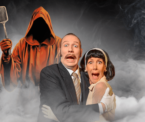 Krimi-Komödie frei nach Edgar Wallace von S. Keim Mit: Julia Horvath & Felix Tittel "Hier spricht Edgar Wallace…“ Naja, mehr oder weniger - denn eigentlich ist es der Intendant des Theaters, der Assistentin Karin Thor und Beleuchter Klaus Kongski über ein Desaster informiert: Das Theater ist voll, aber das gesamte Ensemble steckt samt Bühnenbild im Stau fest. Der Gruselschocker „Der Mönch mit der Peitsche“ droht zu platzen und die Abendeinnahmen auszufallen. Nicht ganz freiwillig wagen Karin und Klaus das Äußerste: Sie schlüpfen selbst in sämtliche Rollen, was zu einem wahnwitzigen Ritt durch haarsträubende Plots und schillernde Charaktere führt. Alle treten sie auf: der wahnsinnige Mörder, der skurrile Butler, eine Jungfer in Nöten oder der schusselige australische Austauschkommissar von Scotland-Yard. In wilder Improvisation springen sie von Rolle zu Rolle und zaubern einen irrwitzigen und rasant komischen Thriller-Spaß auf die Bühne, der immer haarscharf am Scheitern entlang schrammt. Ein turbulenter Abend voller Leichen, Tee und britischem Humor - nicht nur für Wallace-Fans der berühmten Schwarz-Weiß-Filme.  Regie und Bühne: Sascha Gluth  Assistenz: Anett Buchinski  Ausstattung: Julia Horvath