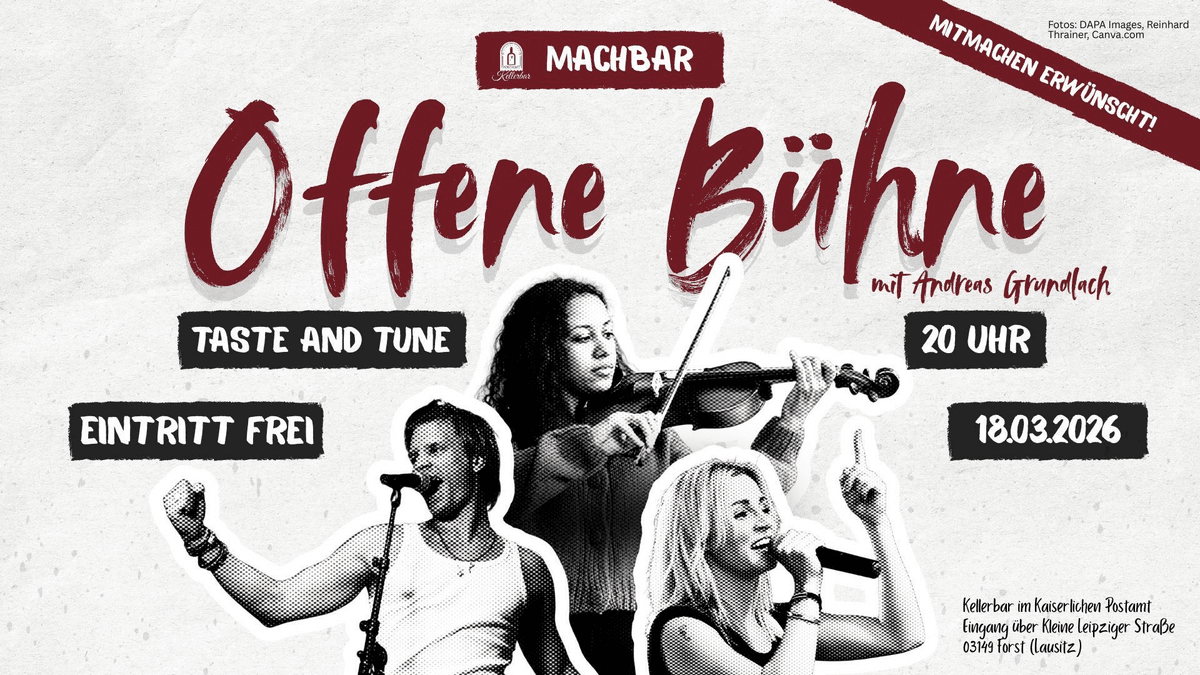Mit „Taste and Tune“ starten eine neue Reihe für alle, die Musik fühlen, Kunst lieben oder einfach gern in guter Atmosphäre Menschen treffen. Offene Bühne mit Andreas Gundlach – Musiker, Multiinstrumentalist, bekannt aus der Gregor Meyle Band und ein echter Freigeist am Klavier. Ob du selbst auftrittst oder nur die Ohren spitzt: Alles kann, nichts muss. Du willst einen eigenen Song spielen? Ein Gedicht vortragen? Eine spontane Jam-Session starten? Dann ist das deine Bühne. Oder du bleibst einfach im Publikum, nippst an einem Drink - und genießt den kreativen Flow. Kein Stress, kein Zwang, kein falscher Ton: “Taste and Tune” ist ein Abend zum Ausprobieren, Zuhören, Genießen und Inspirieren lassen. Egal ob du zum ersten Mal mitmachst oder schon auf der Bühne zu Hause bist – hier zählt nicht Perfektion, sondern Persönlichkeit und Spielfreude. Kommen. Lauschen. Mitmachen. Die Kellerbar im Kaiserlichen Postamt öffnet ihre Tür für alle kreativen Seelen – und die, die es noch werden wollen Ein Abend von vielen im Rahmen der Reihe „Machbar“
