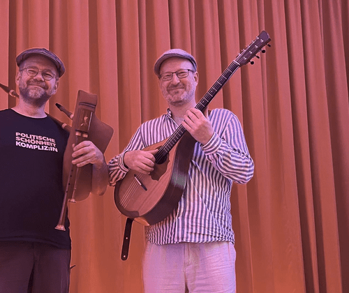 Malz und Whiskey, Melodie und Rhythmus, Stimme und Saiten. Zwei Musiker zelebrieren das irische Gefühl zu leben. Sie singen, erzählen Geschichten und was sich nicht sagen läßt, verwandeln sie in Tänze. René Pütsch und Thomas Strauch sind seit ihrer frühen Jugend in der Folkmusik zuhause. Ob Irish Folk, deutsche Folxlieder oder Folktanz, ihr Repertoire ist breitgefächert. Mit trockenem Humor und feuchtfröhlicher Musik spielen sie für offene Ohren und Herzen.