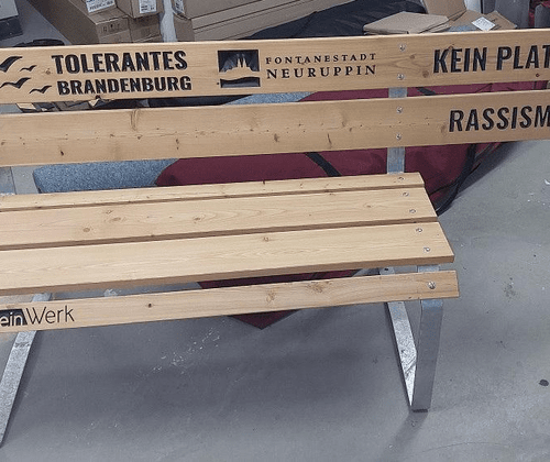 Die Fontanestadt Neuruppin engagiert sich gegen Rassismus und setzt sich für ein tolerantes und weltoffenes Neuruppin ein. Um diese Einstellung präsenter zu zeigen und ein Zeichen gegen Rassisimus und für Toleranz zu setzen, wurden im Jahr 2024, im Rahmen des Jubiläums zum 75. Geburtstag des Grundgesetzes, zwei sogenannte "Toleranzbänke" über die Koordinierungsstelle "Tolerantes Brandenburg" der Staatskanzlei des Landes Brandenburg angefragt. Die Bänke haben eine Rückenlehne von circa zwei Metern, aber nur eine Sitzfläche von eineinhalb Metern, wobei die fehlende Sitzfläche auf der rechten Seite das Motto „Kein Platz für Rassismus“ symbolisiert. Die Herstellungskosten sind für die Fontanestadt Neuruppin kostenneutral, da diese über die Koordinierungsstelle „Tolerantes Brandenburg“ getragen wurden. Die Herstellung, samt Beschriftung an der Rückenlehne mit dem Logo der Fontanestadt, wurde über eine inklusive Werkstatt ausgeführt. Unter dem Motto „Kein Platz für Rassismus“ engagiert sich die Koordinierungsstelle „Tolerantes Brandenburg“ landesweit für den Aufbau dieser Bänke und setzt sich damit für Vielfalt und gegen Rassismus ein. Diesem Ansinnen soll mit den zwei "Toleranzbänken" öffentlich Ausdruck verliehen werden.
