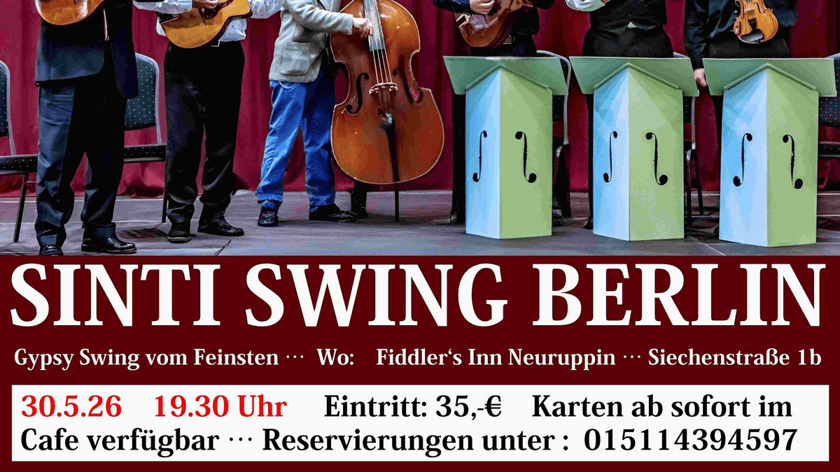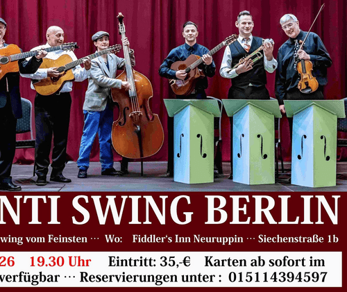 41 Jahre Sinti-Swing-Berlin  Im Jubiläumsjahr verlassen wir Django Reinhardts reine Saiteninstrument-Bsetzung der 30er Jahre. Violine, Sologitarre und - Trompete mit jazzigen Riffs.  So wie Jazz-Musiker immer wieder neue Stücke zu alten Jazz-Standarts erfinden, fiel uns auch das eine oder andere neue Thema zu Klassikern des Gypsy-Swing ein.