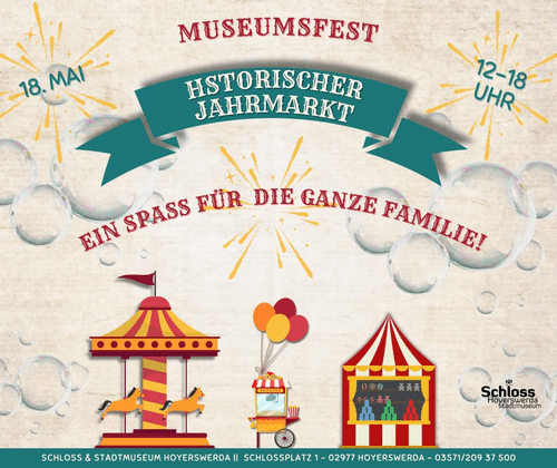 Am Sonntag, den 10. Mai 2025 , verwandelt sich das Museumsgelände des Schloss & Stadtmuseum Hoyerswerda von 12 bis 18 Uhr in einen kleinen historischen Jahrmarkt , der Jung und Alt auf eine nostalgische Reise mitnimmt. Das Museumsfest bietet ein buntes Programm mit liebevoll gestalteten Attraktionen, das Erinnerungen an vergangene Zeiten weckt und neue schafft.   Weitere Informationen unter: museum-hy.de