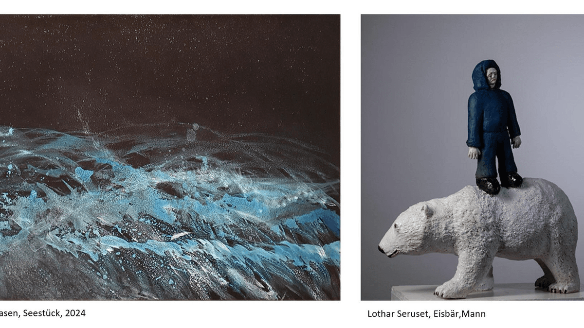 Astrid Clasen             Malerei Die Unendlichkeit, das Unbekannte in Wasser, Himmel und Meer - Versuche, Vergangenes und Gedanken und Empfindungen, auszudrücken.  Lothar Seruset                   Skulpturen Viel Sympathie für den Menschen und die Tiere spricht aus seinen Skulpturen – er steht mitten drin  in dieser Welt und beobachtet genau.