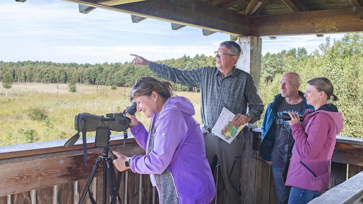 Am südwestlichen Rand von Hoyerswerda, eingebettet in die Landschaft des Lausitzer Seenlandes, liegt das Naturschutzgebiet Dubringer Moor. Vor rund 10.000 Jahren durch Gletscher der Saale-Eiszeit geformt, zählt es zu den wenigen Mooren mit bis heute aktiver Torfbildung auf etwa 1.700 Hektar. Eine artenreiche Pflanzen- und Tierwelt sowie die besondere Ruhe der Landschaft prägen dieses Gebiet. Funde von Pollen und Pflanzenresten belegen eine Besiedlung bereits in der Jungsteinzeit. Handelswege, Mühlen, Schlösser und die traditionsreiche Teichwirtschaft erzählen von der langen Nutzung durch den Menschen. Nach der Wiedervereinigung konnten geplante Bergbauvorhaben gestoppt und das Moor dauerhaft erhalten werden. Die rund 3 km lange und etwa 1,5-stündige „Schnuppertour am Rande des Dubringer Moores“ beginnt an der Teichwirtschaft Zelder. Der Weg führt entlang der Teichkette bis zum Aussichtsturm. Informationstafeln vermitteln Wissenswertes über die seltene Tierwelt und die Besonderheiten des Moores.