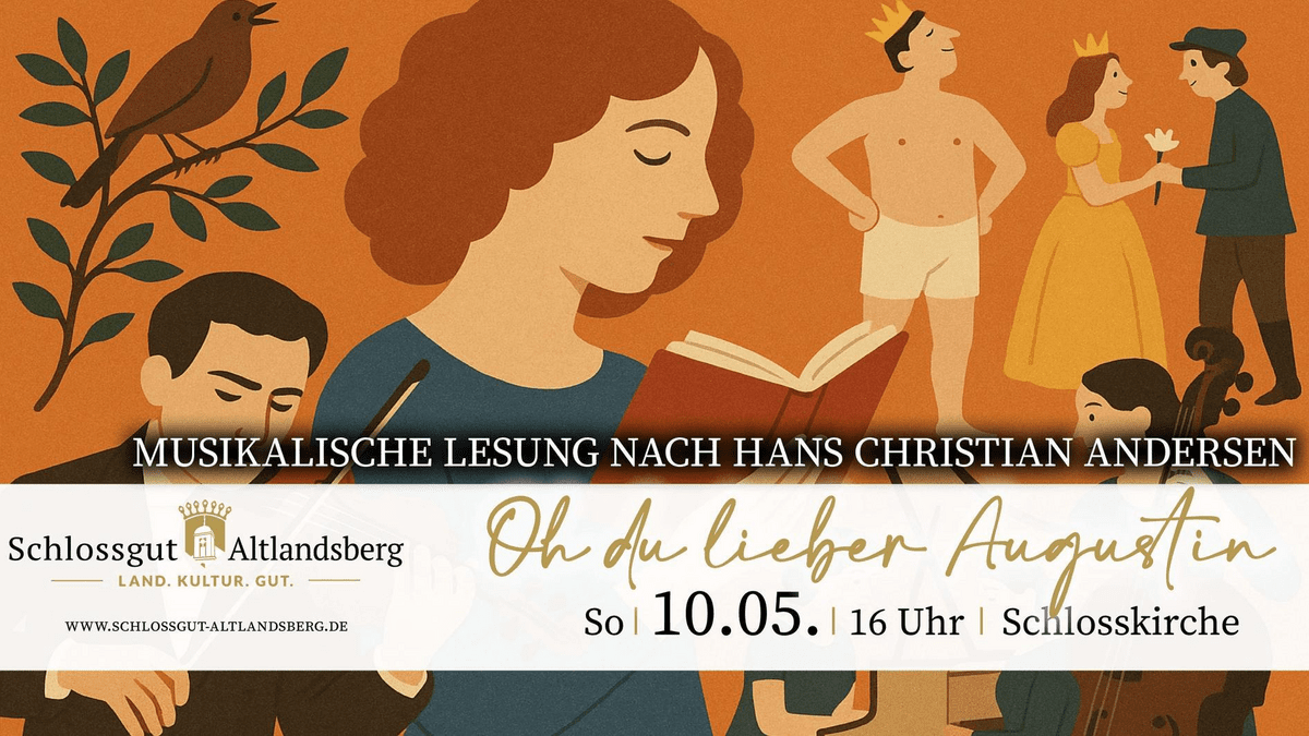 Eine musikalische Lesung nach Märchen von Hans Christian Andersen Die Märchen von Hans Christian Andersen sind zeitlos – voller Humor, Poesie und feiner Beobachtungen, die bis heute berühren. In der musikalischen Lesung „Oh du lieber Augustin“ erwachen drei seiner beliebtesten Geschichten zu neuem Leben: „Die Nachtigall“, „Des Kaisers neue Kleider“ und „Die Prinzessin und der Schweinehirt“. Der dänische Schriftsteller Hans Christian Andersen (1805–1875) schuf eine facettenreiche Sammlung von Märchen, die mitunter auch politisch aktuelle Themen aufgreifen. Die musikalische Lesung „Oh, Du lieber Augustin“ bietet daher nicht nur Kindern, sondern auch Eltern und Erwachsenen ein unterhaltsames Erlebnis – eine Veranstaltung für Jung und Alt, die die ganze Familie anspricht. Elisabeth Richter-Kubbutat und das Knobelsdorff-Ensemble Berlin, bestehend aus Musikern der Staatskapelle Berlin, präsentieren die Märchen „Des Kaisers neue Kleider“, „Die Prinzessin und der Schweinehirt“ sowie „Die Nachtigall“ auf vergnügliche und lebendige Weise. Die Lesung wird musikalisch von einer Sopranistin sowie drei Instrumentalisten an Violine, Kontrabass und Klavier begleitet und kunstvoll untermalt. Die Sopranistin verleiht der Nachtigall mit viel Ausdruckskraft unterschiedliche musikalische Facetten, während virtuose Geigenvariationen das Programm bereichern. Ein überraschendes Solostück für den Kontrabass sorgt ebenso für besondere Momente. Selbstverständlich erklingen dabei verschiedene Interpretationen des bekannten Liedes „Oh, Du lieber Augustin“. Die musikalische Bandbreite reicht vom Barock bis hin zu Tschaikowski. Zwischendurch sorgen die Musiker mit heiteren Klängen und Geräuschen für eine lebendige und abwechslungsreiche Atmosphäre. Märchen sind seit jeher mehr als bloße Unterhaltung: Sie verbinden fantastische Elemente mit moralischen und gesellschaftlichen Botschaften. Insbesondere die Geschichten Andersens faszinieren durch ihre Mischung aus kindlicher Fantasie und kritischem Blick auf menschliche Schwächen und soziale Themen. Diese zeitlose Relevanz macht die Veranstaltung zu einem besonderen Erlebnis, das Generationen miteinander verbindet und die Märchen in neuem Glanz erstrahlen lässt Sprecherin: Elisabeth Richter Kubbutat Knobelsdorff-Ensemble Berlin Sopran: Sophie Linden Violine: Laura Volkwein Kontrabass: Alf Moser Cembalo: Mimoe Todo Die Veranstaltung richtet sich an Kinder, Eltern und Erwachsene gleichermaßen – ein vergnügliches Erlebnis für die ganze Familie.