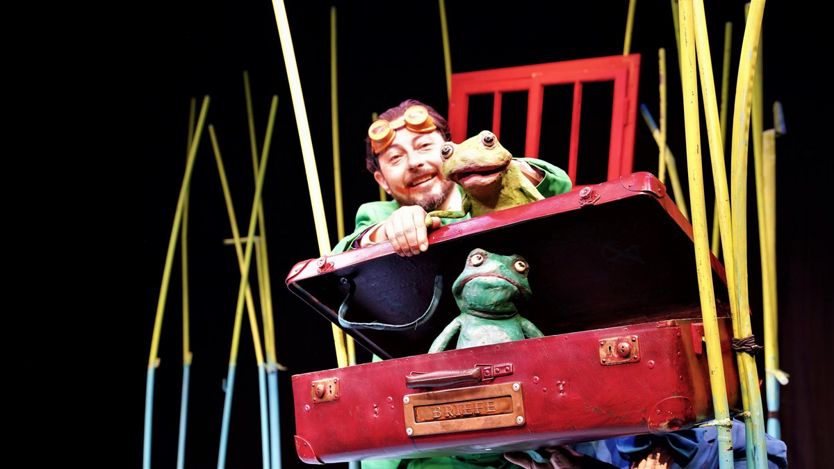 Regie: Torsten Gesser Spiel: Arkadiusz Porada / Tilo Müller Ausstattung, Puppen und Kostüme: Christof von Büren Vogelgezwitscher. Ein sanftes Rauschen. Schilf am Horizont. Ein Teich. Kein Frosch. Oder doch? Zwei sogar- ein Frosch und ein Kröterich- begeben sich auf den Weg, oder soll man sagen, in den Teich…, um sich an diesem schönen Ort niederzulassen. Am Anfang dem Anderen eher skeptisch gegenüber, lernen sie sich schnell kennen. In kleinen, wunderbaren Begegnungen werden sie zu Freunden. Ob das gut geht? Ein Badespaß im Teich, ohne nass zu werden. Ein spezielles Vergnügen um Freundschaft, Sehnsucht, Kopf- und Bauchgefühl mit Puppen und Menschen in Flossen.