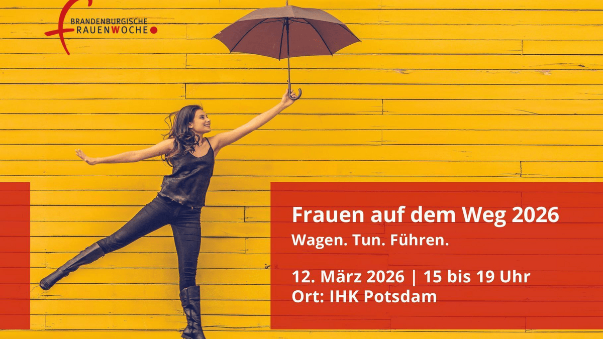 Ganz nach dem Motto „Wagen. Tun. Führen.“ laden wir Gründerinnen, Unternehmerinnen und alle interessierten Frauen und Männer zu „Frauen auf dem Weg“ ein. Ziel ist es, Mut zu machen, trotz großer Herausforderungen die eigenen Ideen zu verwirklichen, voneinander zu lernen und wertvolle Kontakte zu knüpfen. Freuen Sie sich auf eine Veranstaltung voller Weggabelungen mit spannenden Gründungs- und Karrieregeschichten, inspirierenden Impulsen und interaktiven Talkrunden. Während der Veranstaltung und in den Pausen stellen sich Gründerinnen vor und beantworten gerne Ihre Fragen. Die Veranstalter stehen für individuelle Gespräche ebenfalls zur Verfügung   Kooperationspartner dieser Veranstaltung sind: IHK und HWK Potsdam, Social Impact, Lotsendienst, WFBB, Frauenzentrum, BPW