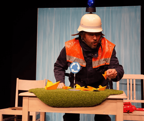 Regie: Ronald Mernitz Spiel: Arkadiusz Porada Ausstattung: Judith Mähler Das Leben von Feuerwehrleuten ist spannend. Feuer und Rauch, man steigt auf hohe Leitern, durch Fenster und brennende Türen, löscht und rettet. Aber sind Feuerwehrleute immer Helden, den ganzen Tag, von früh bis spät?