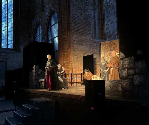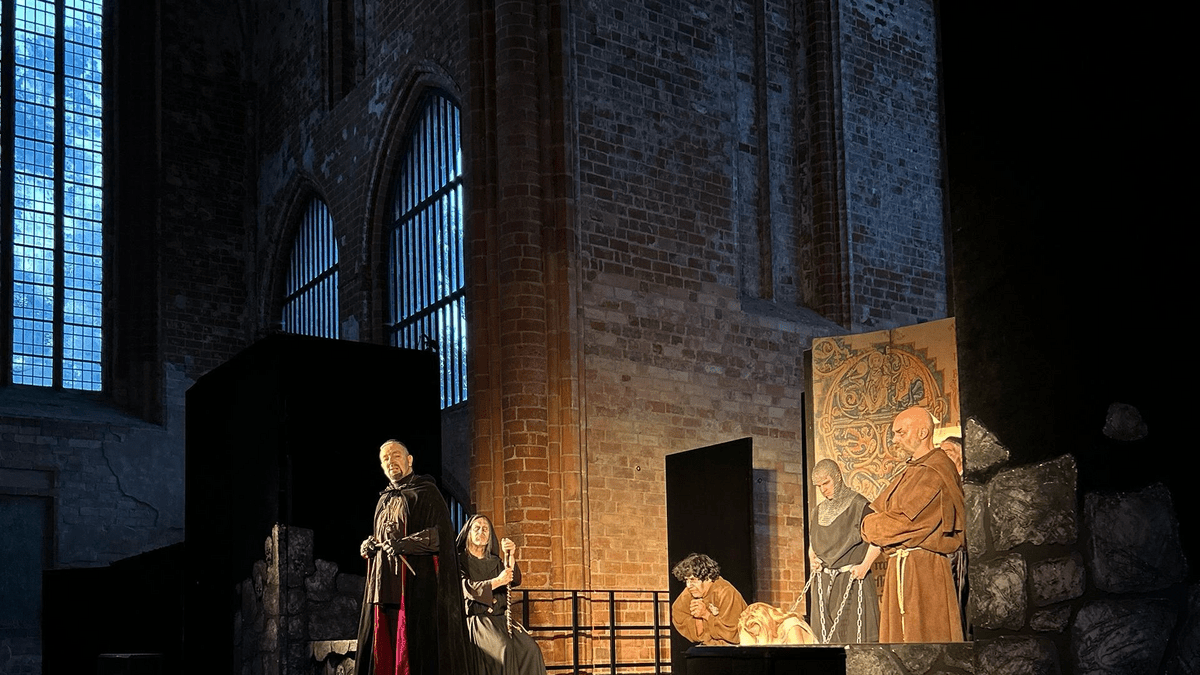 Das Berliner Kriminal Theater zu Gast: Tödliche Geheimnisse im Kloster Chorin Ein rätselhafter Todesfall erschüttert ein abgelegenes Kloster. William von Baskerville und sein Novize Adson von Melk stoßen bei ihren Ermittlungen auf Intrigen, Machtspiele und ein dunkles Geheimnis rund um die Bibliothek. Als weitere Mönche sterben, wird klar: Im Kloster ist nichts, wie es scheint.