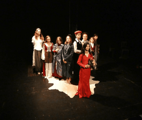 Oder die Geheimnisse der Grafschaft Grummelsheim (10+) Die Grafschaft Grummelsheim ist in heller Aufregung: Für die junge Adele steht der große Tag ihrer Hochzeit bevor! Alle sind unter Zeitdruck mit den Vorbereitungen beschäftigt und das Küchenpersonal ist besorgt, ob das Essen auch rechtzeitig fertig wird. Der künftige Bräutigam, Fürst Valentin von Oranien, ist hocherfreut, eine so gute Partie zu machen. Die Freude ist auch ganz auf der Seite des Grafen, der seine Tochter gut verheiratet wissen will. Und alles könnte munter einem „Happy End“ entgegengehen, gäbe es da nicht ein paar wesentliche Dinge, die verheimlicht wurden. Im September 2025 haben sich die TheaterStarter im T-Werk als Gruppe neu zusammengefunden und unter der Leitung von Janina Sasse begonnen, an ihrem ersten Stück „Der große Tag“ zu arbeiten. Die Stückidee sowie die Inszenierung, das Textbuch, die Bühne und die Kostümgestaltung wurden gemeinsam mit der Gruppe entwickelt. Regie, Spielleitung Janina Sasse Assistenz Martha Ripp Kostüme Eleni Prestel Spiel Elia Dumet, Lili Engel, Minouche Erök Afzal, Julika Emilia Hanysz, Albert Heinzel, Frida Krüger, Gustav Kuhnt, Fio Manthey, Jakob Martens, Leni Schwarz, Lilienn Triems, Olivia Triems Bühne, Technik Andrew Connolly-Gilchrist, Henning Günther, Simeon Lazarevski Foto Eleni Prestel / Divdena Miteva Dauer: 40 Min.