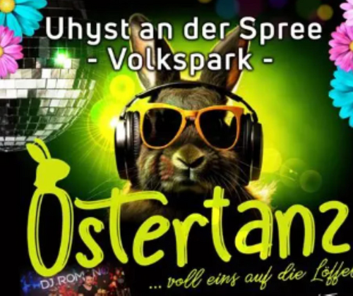 Ostertanz... voll eins auf die Löffel! Vergiss die gemütliche Eiersuche im Garten - dieses Jahr gibt es zu Ostern ordentlich was auf die Ohren! Mit dabei sind: RDE DISCO Express HELENE FISCHER Double-Jenny WOLFGANG PETRY Double-Dirk Maron JENNIFER STURM F.MEINECKE        ...im beheizten Festzelt! Vorverkaufsstellen: Bäckerei Schütze in Uhyst, Bäckerei Medack in Klitten, Apotheke in Groß Dubrau und Tankstelle in Lohsa