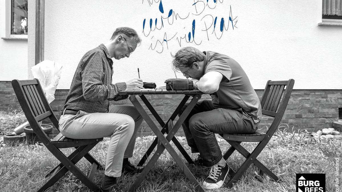 Das Leipziger Autoren-Duo Jascha Riesselmann und Olav Amende zeichnet für den Workshop „Das leere Blatt füllen“ auf der Burg verantwortlich. Eingeladen sind Jugendliche zwischen 13 und 18 Jahren, die mittels Sprache Neues entdecken möchten.  Wie funktioniert Kreatives Schreiben? Was muss man tun, um seinen eigenen Stil zu finden? In der Werkstatt von Riesselmann/Amende ist viel Raum, in spielerischen Übungen das „utopische Potenzial“ im eigenen Text zu erkunden. Wie lässt sich ein Text verändern, dass er den eigenen Ideen entspricht? Welche Wörter braucht es, um diese kreativ und eigenständig ins Bild zu setzen? Jascha Riesselmann und Olav Amende zeigen, dass die „hohe Kunst“ des Schreibens gar nicht so schwer ist und haben dafür eine Vielzahl unkonventioneller Übungen entwickelt, die ganz spielerisch zu überraschenden Ergebnissen führt. Gearbeitet wird am Donnerstag und Freitag, 9./10. April 2026, jeweils von 10 bis 15 Uhr. Anmeldung bis 27. März (Jugendliche ab 13 Jahren) unter info@burg-beeskow.com