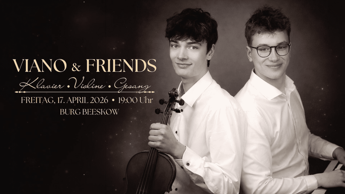 Mit ihrer Kombination aus Geige und Klavier interpretieren Constantin & Lenny Musik in vielen Stilrichtungen – von klassischer Musik über Filmmusik bis hin zu modernen Liedern. Das junge Instrumentalduo aus Beeskow wird an diesem Abend von befreundeten Musikern unterstützt.