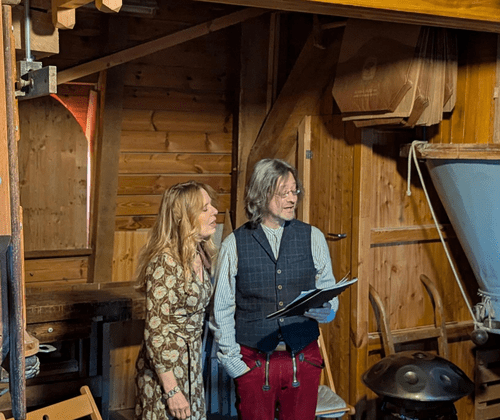 Der Blaue Montag: "Der Müller & die Schätze der Erde"  Von Natur aus ist dem Müllerhandwerk vor allem die Bodenständigkeit beigegeben: Ob Getreide oder Saaten, Metall, Holz oder Lumpen - die Mühle verarbeitet fast jedes Material zu einem neuen Produkt. Doch wo Materie im Spiel ist, geht es auch um den Besitz derselben, um Gewinn oder Verlust, Reichtum oder Armut. Und so manchen Müller packt die Habgier: Die Schätze, die uns die Erde gibt, werden zu einem tückischen Fluch, an dem sich nicht selten unterirdische Wesenheiten beteiligen. Das Erzähltheater Machandel gräbt sich fleißig durch die Erdschichten bis in die Kavernen erzählerischer Kostbarkeiten. Ein Museum besuchen, wenn alle anderen geschlossen sind. Ganz in Ruhe und ohne Gedränge in eine andere Welt abtauchen. Und danach: Märchenerzählungen lauschen. All das können Sie in diesem Jahr an unseren Blauen Montagen in der Historischen Mühle von Sanssouci erleben!  In Zusammenarbeit mit dem Erzähltheater Machandel bietet die Historische Mühle an fünf Montagen (von Mai bis September) ein ganz besonderes Erlebnis: Nach der Arbeit rein ins Museum! Genießen Sie von der Galerie der berühmten Holländermühle den weitläufigen Blick auf die Parkanlagen von Schloss Sanssouci und – mit etwas Glück – auch das grandiose Farbenspiel des Sonnenuntergangs. Erleben Sie die Arbeit der Mühle und der Müller, den Duft von Getreide und Mehl.  Das Erzähltheater Machandel (Silvia Ladewig & Oliver Kube) präsentiert bereits schon seit 2017 Märchenen und Geschichten von Mühlen & Müllern in den Räumen der Historischen Mühle von Sanssouci. Zugänglichkeit Die Historische Mühle ist nicht barrierefrei.