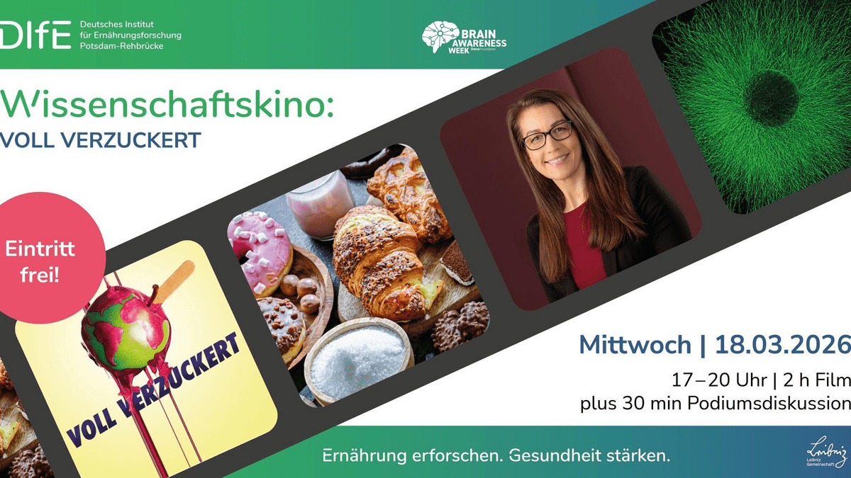 Zucker ist in aller Munde und gehört weltweit zu den am häufigsten konsumierten Lebensmitteln. Doch welche Auswirkungen hat er auf unseren Körper? Und was passiert, wenn unsere Ernährung überwiegend aus zuckerhaltigen Produkten besteht? Diesen Fragen ging der australische Schauspieler und Filmemacher Damon Gameau 60 Tage lang in einem Selbstversuch nach. Im Mittelpunkt stehen dabei Lebensmittel, die als gesund gelten: fettarmer Joghurt, Müsli, Fruchtriegel, Säfte oder Smoothies. Begleitet wurde das Experiment von Wissenschaftlern und Ernährungsberatern. Gleichzeitig reist Gameau um die Welt, spricht mit Ärzten, Fachleuten und Betroffenen und wirft einen kritischen Blick auf die Lebensmittelindustrie. Filmvorführung im Rahmen der Brain Awareness Week mit anschließender Diskussion zwischen Luise Molling (foodwatch), Dr. Friedrich Johenning (Charité – Universitätsmedizin Berlin) und Dr. Rachel Lippert (DIfE)  Moderation: Annette Weiß (funkenweiss)
