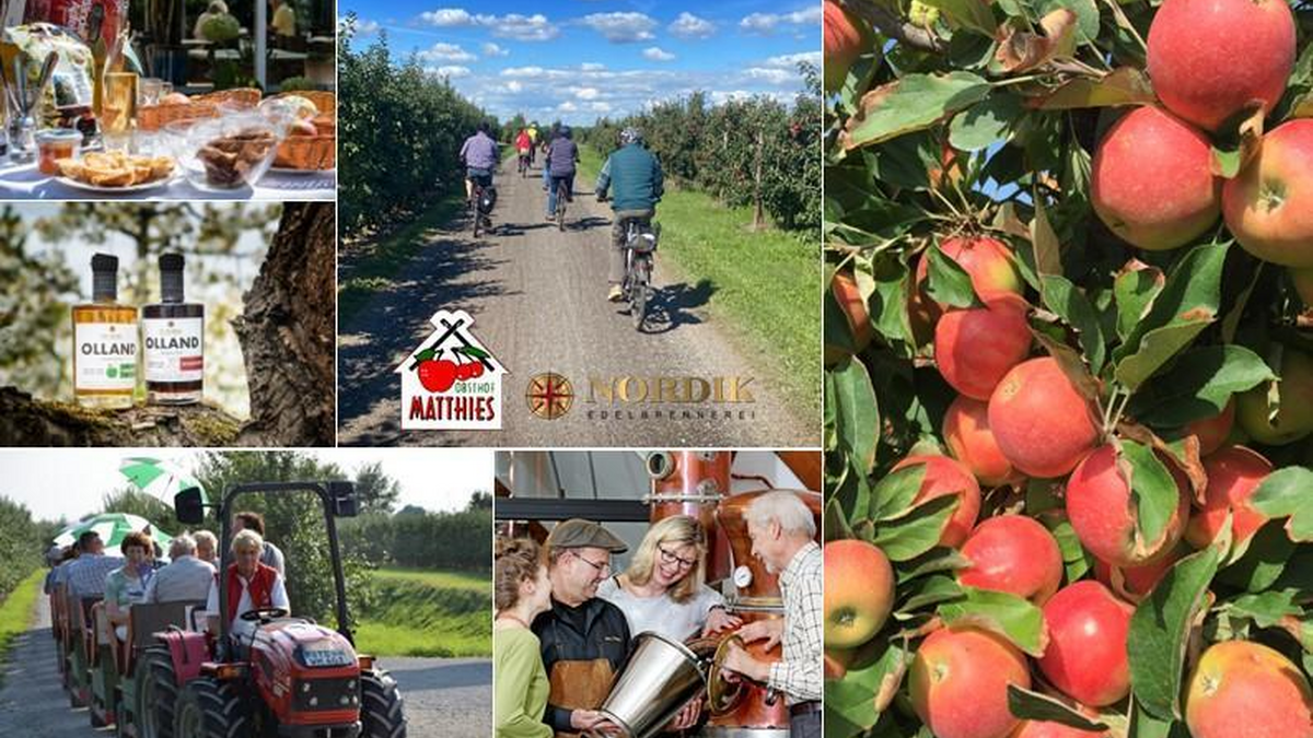 Faszination Apfel – Genuss, Natur und Bewegung im Alten Land Entdecken Sie das Alte Land von seiner genussvollsten Seite! Bei unserer Tagestour „Faszination Apfel“ dreht sich alles um den Apfel – vom Anbau bis zur Veredelung. Freuen Sie sich auf einen abwechslungsreichen Tag voller Eindrücke, Geschmackserlebnisse und Bewegung an der frischen Luft. Die Tour startet mit einer Fahrt im Obsthof-Express durch die Obstplantagen inklusive spannender Informationen rund um den Obstanbau vom Chef persönlich. Bei der Verkostung „Apfel erleben“ lernen Sie den Apfel von seinen unterschiedlichen Seiten kennen. Anschließend geht es auf eine geführte Fahrradtour (ca. 10 km) von Jork nach Horneburg durch die idyllische Landschaft des Alten Landes (eigenes Fahrrad, Leihfahrräder auf Anfrage). Ein weiteres Highlight ist die Führung durch die Edelbrennerei Nordik mit Schnapsverkostung. Abgerundet wird der Tag durch ein gemeinsames Mittagessen mit leckerer Borsteler Apfelsuppe sowie Kaffee und Kuchen.