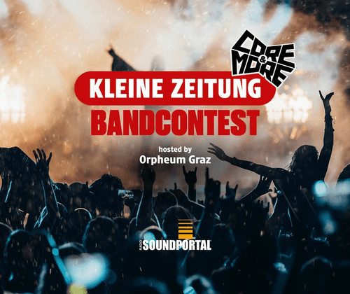 Gemeinsam mit dem Orpheum Graz wird der letzte freie Slot für das CORE&MORE-Festival vergeben mit 1.000 Euro Gage. Beim großen Live-Finale am 13. Mai im Orpheum Graz treten die besten ausgewählten Acts gegeneinander an und liefern eine energiegeladene Show für Publikum und Jury. Wer überzeugt, sichert sich den begehrten Platz im Festival-Line-up des CORE&MORE-Festivals. Ein Pflichttermin für alle Fans harter Riffs und intensiver Live-Atmosphäre!Alle Infos zum Bandcontest sowie Tickets unter: kleinezeitung.at/bandcontest.