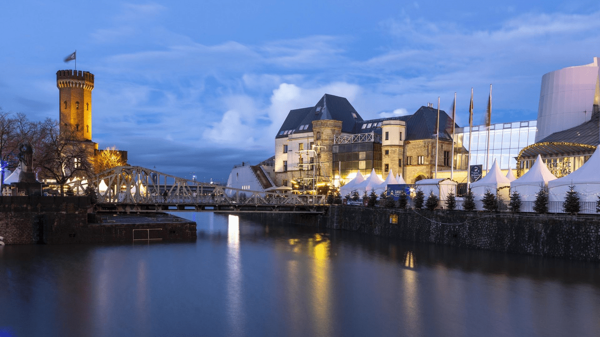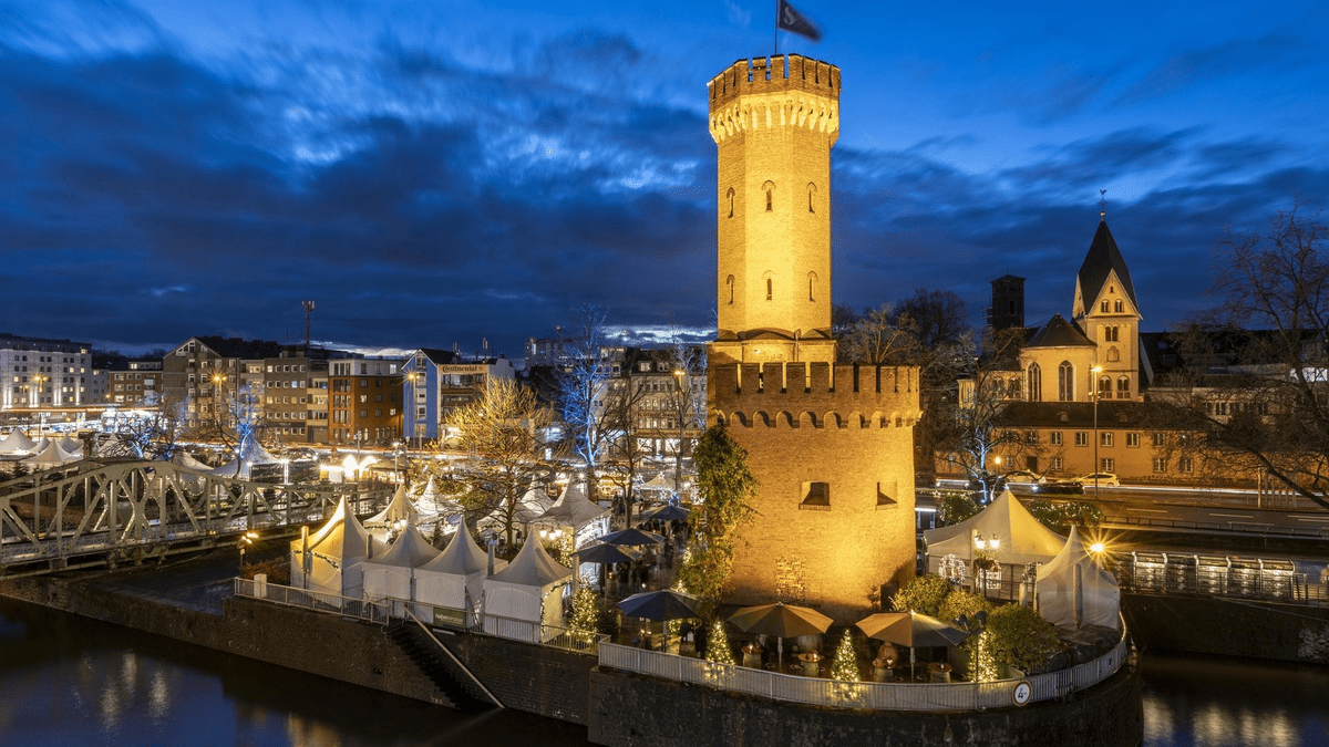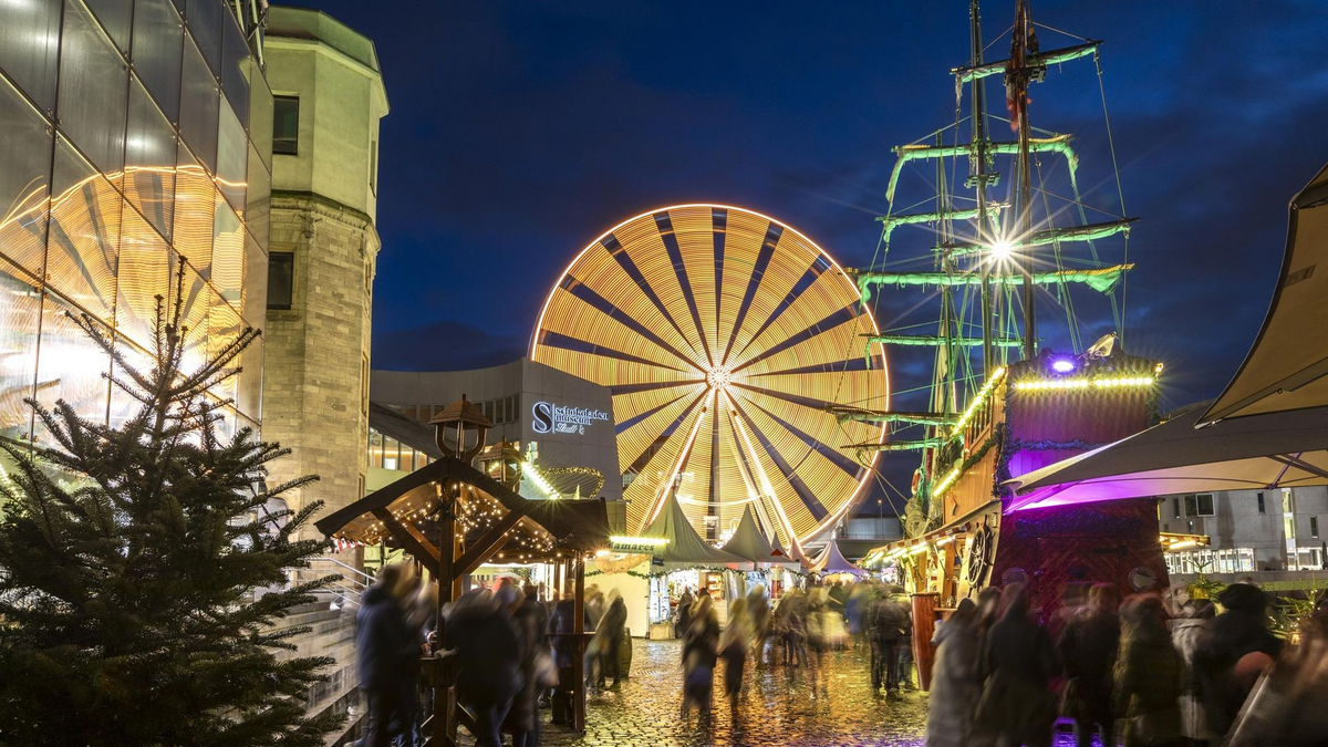 Der Kölner Hafen-Weihnachtsmarkt präsentiert sich in einzigartiger Manier am Rheinufer, nahe dem Schokoladenmuseum, als stilvolles Entree zum Rheinauhafen. Rund siebzig schneeweiße Pagodenzelte, deren Form an Schiffsegel erinnert, gestalten eine maritime Kulisse. Das Angebot umfasst erlesene Waren und Kunsthandwerk, ergänzt durch regionale sowie internationale Gaumenfreuden. Am stattlichen Dreimaster-Holzschiff lädt erlesener Winzerglühwein zum Verweilen ein. Ein abwechslungsreiches Rahmenprogramm mit maritimen Gesängen und Piratendarbietungen sowie die charakteristische Leuchtturm-Spelunke akzentuieren die festliche Hafenatmosphäre. Ein markantes Riesenrad, fast fünfzig Meter hoch, bietet zudem eine unvergleichliche Perspektive auf die Kölner Stadtlandschaft, den Dom und den Rhein, eingebettet in das funkelnde Lichtermeer des Marktes.