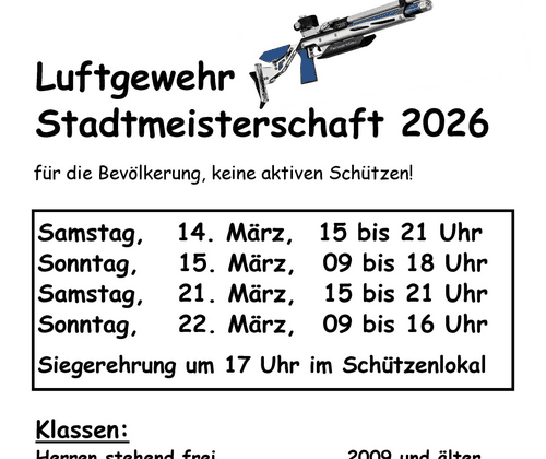 Luftgewehr Stadtmeisterschaft 2026 09:00 Uhr