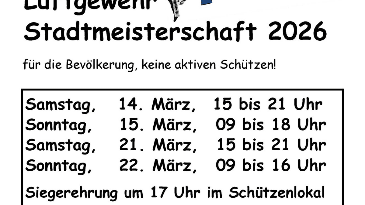 Luftgewehr Stadtmeisterschaft 2026 15:00 Uhr