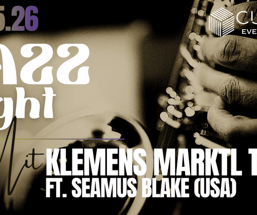 Bei der Jazz Night im CUBE49 präsentiert der renommierte österreichische Jazz-Schlagzeuger Klemens Marktl sein hochkarätig besetztes Trio. Mit ihm auf der Bühne stehen der serbische Bassvirtuose Milan Nikolić sowie – als besonderes internationales Highlight – der gefeierte US-Tenorsaxophonist Seamus Blake, Gewinner der Thelonious Monk International Jazz Saxophone Competition und langjähriger Fixpunkt der New Yorker Jazzszene